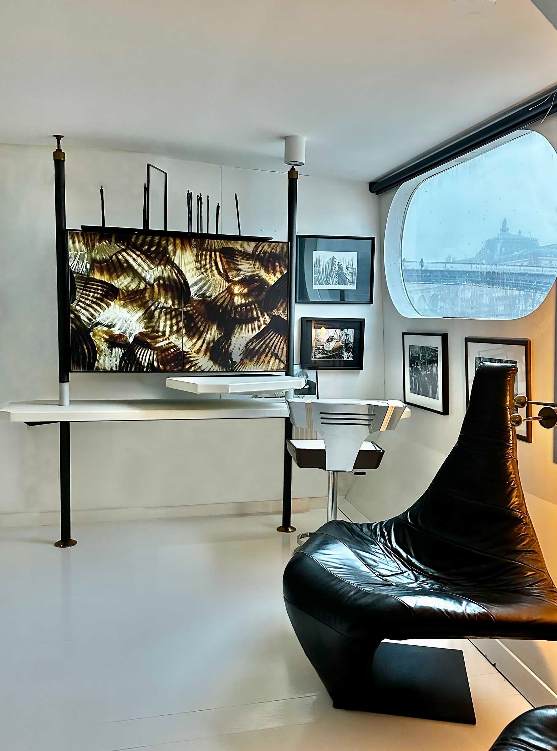 Mathilde de l'Ecotais designs entire universes from a photograph. Here, with the Fugu fin, she plays with the ceiling height and creates a zenithal opening that brightens the space and naturally illuminates the photograph.