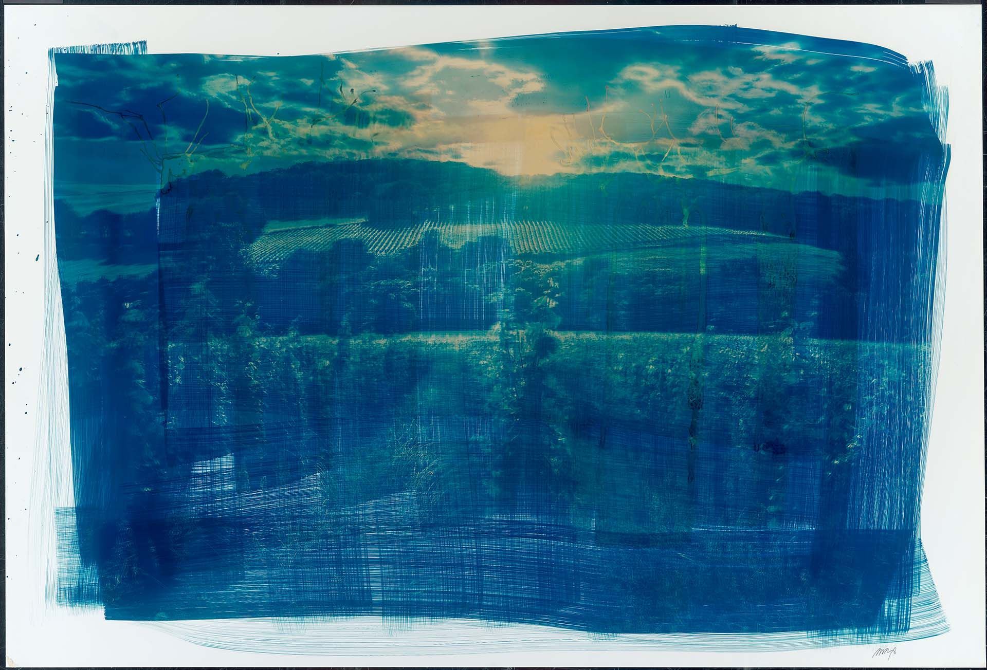 Ces cyanotypes, nés d’un dialogue entre numérique et geste ancien, sont une ode la mémoire du voyage. Mathilde de l'Ecotais module la formule pour affirmer sur le papier des ocres brûlés, des verts céladon, des turquoises légers. Chaque paysage devient une trace entre le passé et le présent. De ces tirages uniques, naissent nos propres souvenirs de voyages.