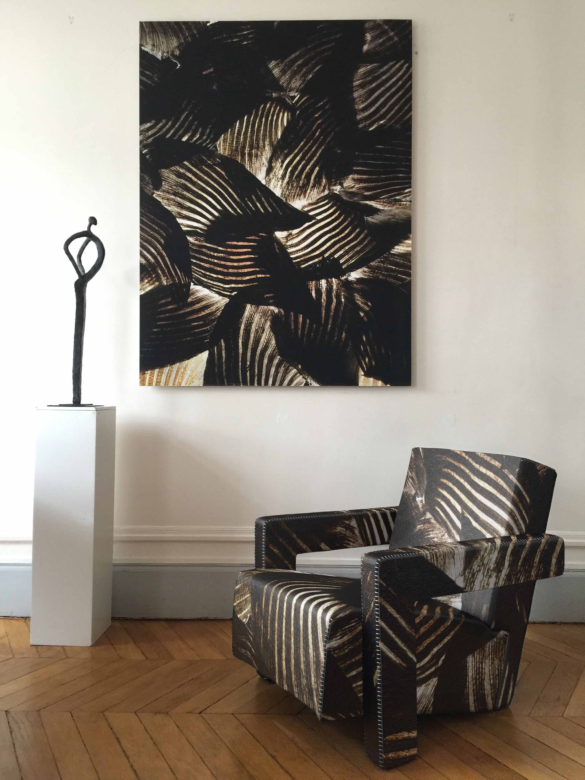 Mathilde de l'Ecotais designs entire universes from a photograph. Here, with the Fugu fin, she plays with the ceiling height and creates a zenithal opening that brightens the space and naturally illuminates the photograph.