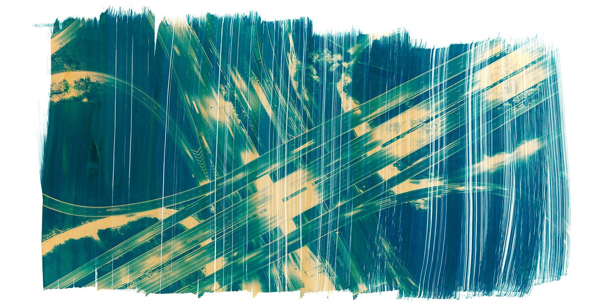 Ces cyanotypes, nés d’un dialogue entre numérique et geste ancien, sont une ode la mémoire du voyage. Mathilde de l'Ecotais module la formule pour affirmer sur le papier des ocres brûlés, des verts céladon, des turquoises légers. Chaque paysage devient une trace entre le passé et le présent. De ces tirages uniques, naissent nos propres souvenirs de voyages.